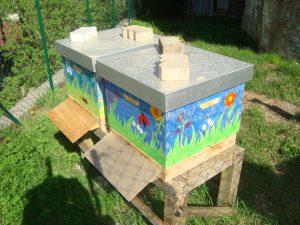 Die Bienenkästen haben wir alle zusammen bunt bemalen dürfen.